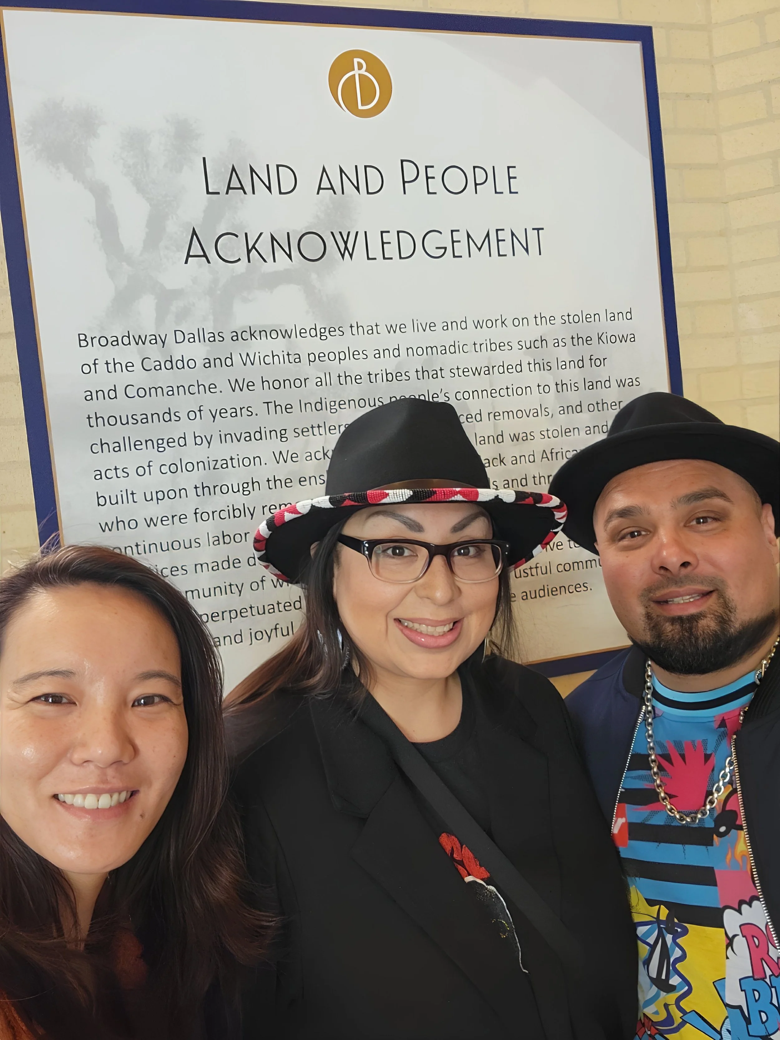 Broadway Dallas acknowledges that we live and work on the stolen land of the Caddo and Wichita peoples and nomadic tribes such as the Kiowa and Comanche. We honor all the tribes that stewarded this land for thousands of years. The Indigenous people’s connection to this land was challenged by invading settlers, genocide, forced removals, and other acts of Equity, Diversity, Inclusion and Accessibility Exhibition colonization.